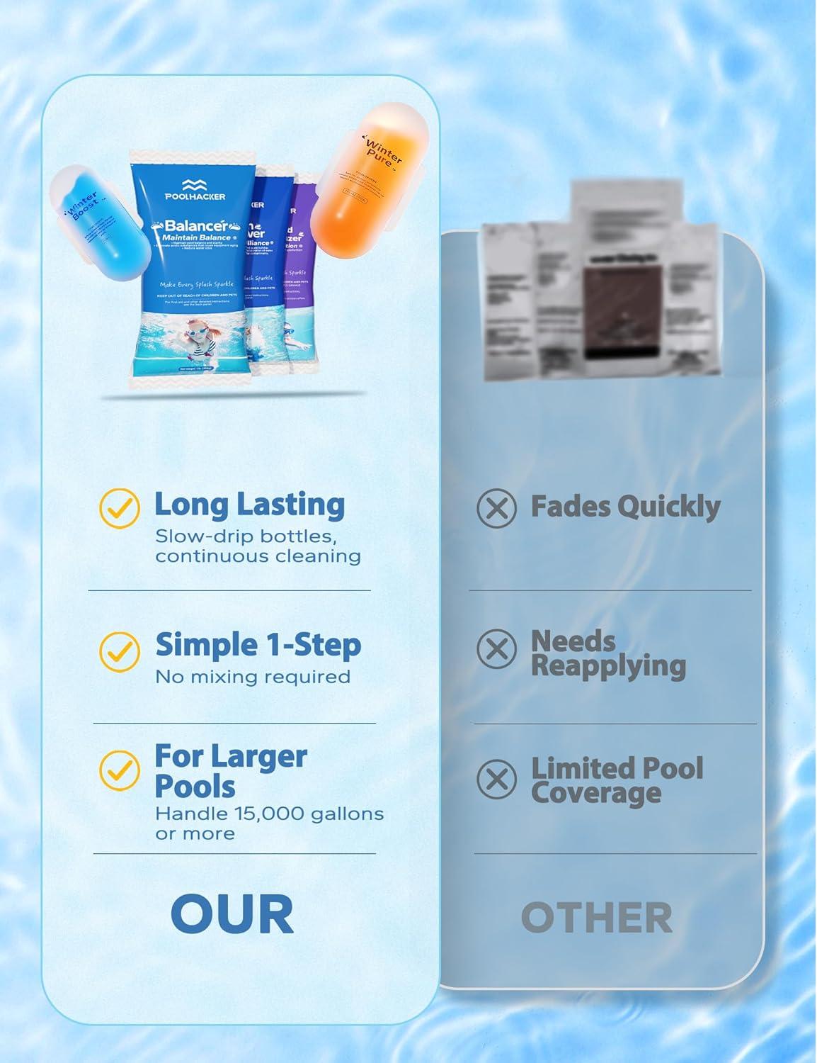 【Lasts Up to 6 Months】Long-acting formula designed for the full off-season, supporting clear water performance from closing day until next opening.