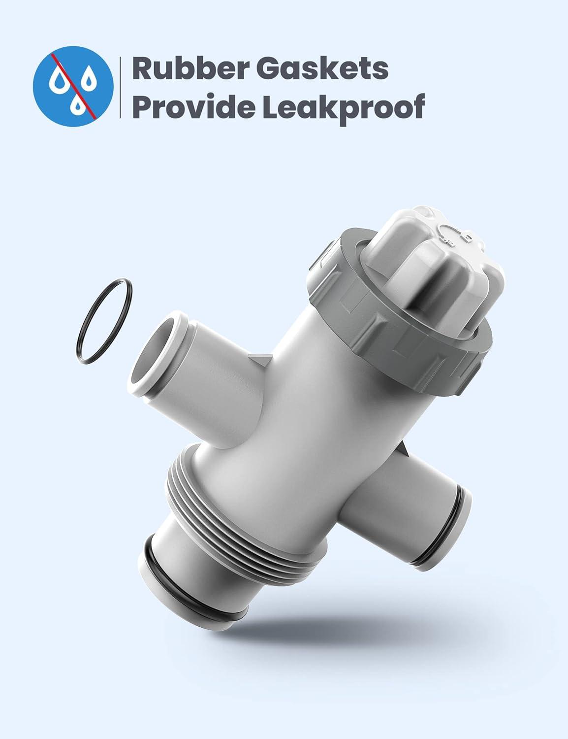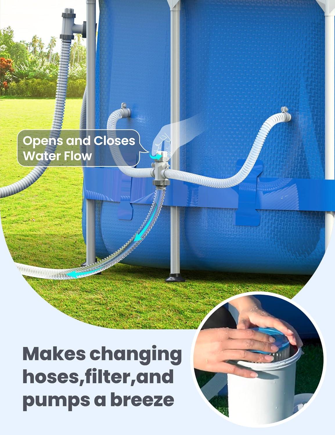 Compatible – These valves are compatible with above ground pools, making them a versatile solution for pool maintenance. They work seamlessly with the 1500, 2500, and 4000 gallons per hour filtration pumps, as well as the Saltwater Chlorinator and 2000 gallon per hour Chlorinator Pump Combo.