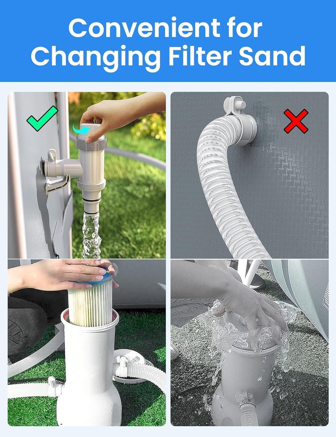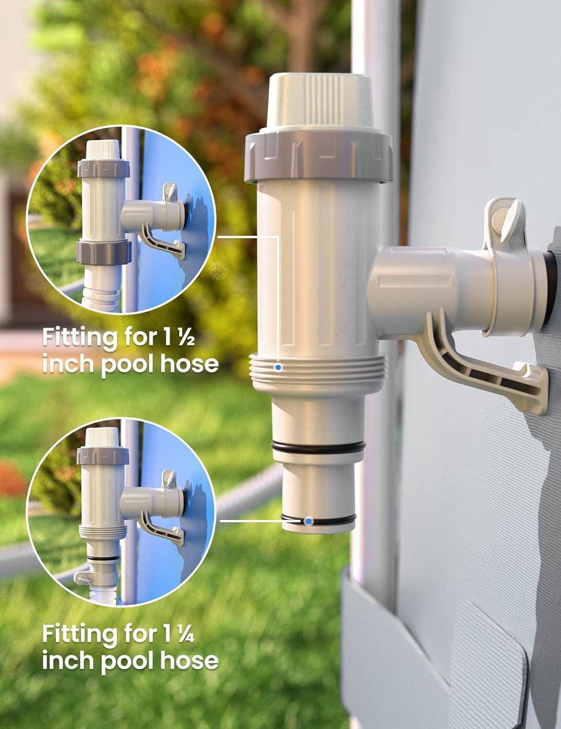 Easy Assemble & Efficient – High quality plastic materials, which is sturdy and durable above ground pool parts. Directly connects to 1¼” pool wall connecter. Secure the hose connection with clamp. Fit for 1¼” or ½” hoses to connected with outlet of the plunger valve.