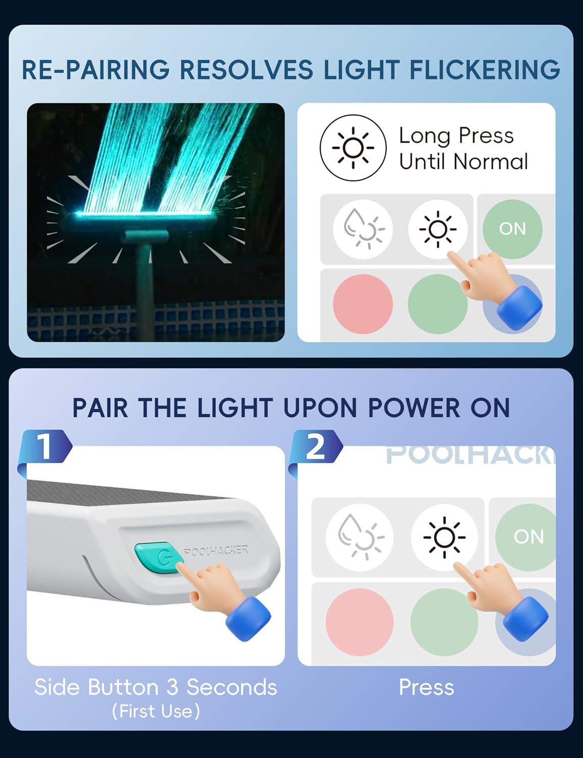 🌅LUMINOUS WATER SYMPHONY – As dusk falls, our fountain light automatically illuminates (Light Sense). Then, when night has fallen and water sprays from the fountain, creating a dazzling dance of light and motion. It’s the perfect transition from day to night, from busy to relaxed, from summer heat to refreshing coolness. Your pool isn’t just water—it’s alive.